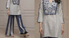 Ivory Mirror Work Kurta Set with Navy Striped Palazzo